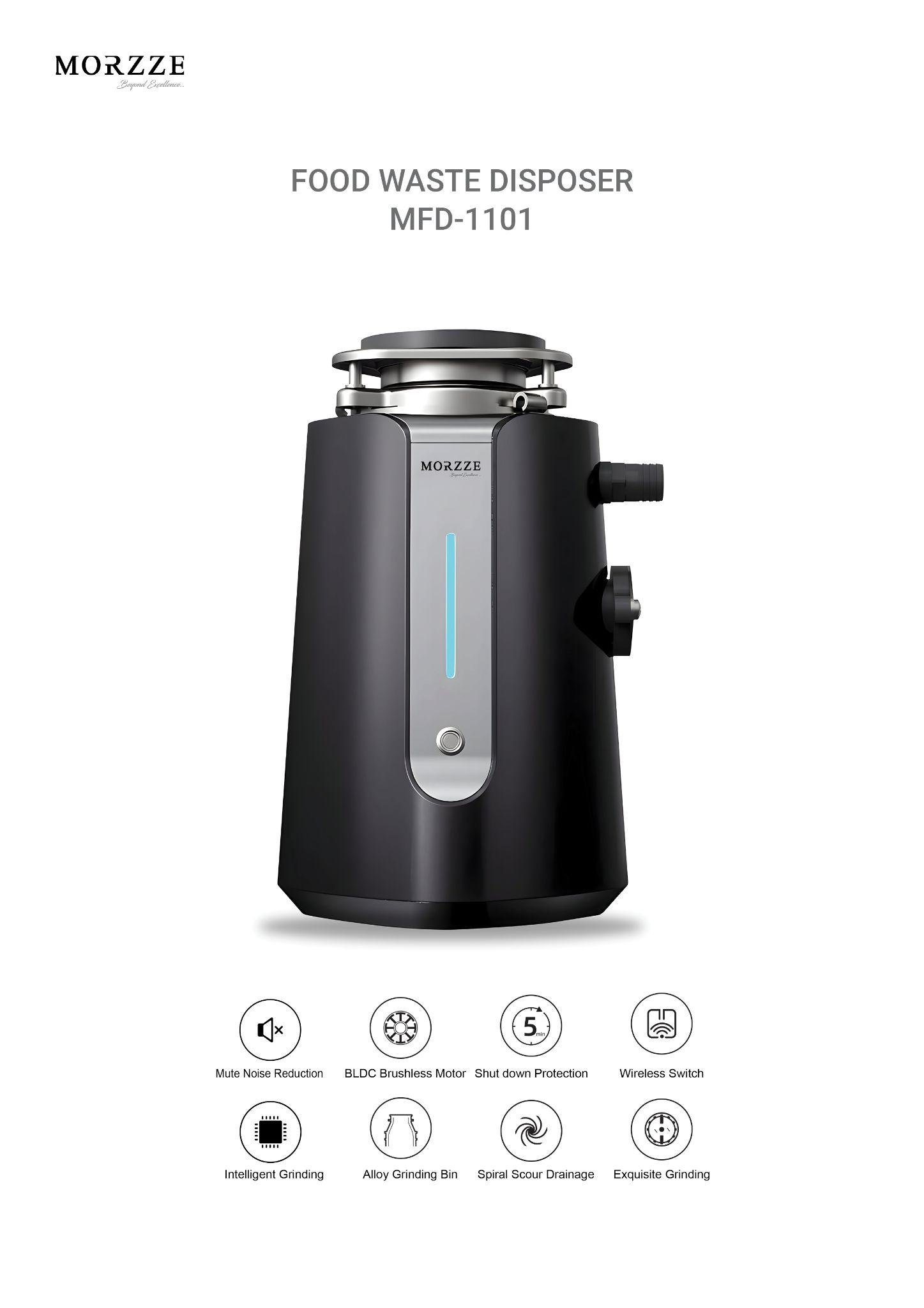 The Morzze’s Food Waste Disposer MFD 1101 is designed for kitchens that require efficiency, hygiene, and sustainability. Thus, it has features for the effective management of food waste, clearing the clutter in the kitchen, and enhancing the environment. Wireless switch control for the user’s convenience; it also has sound insulation, making it an unobtrusive addition to the kitchen.